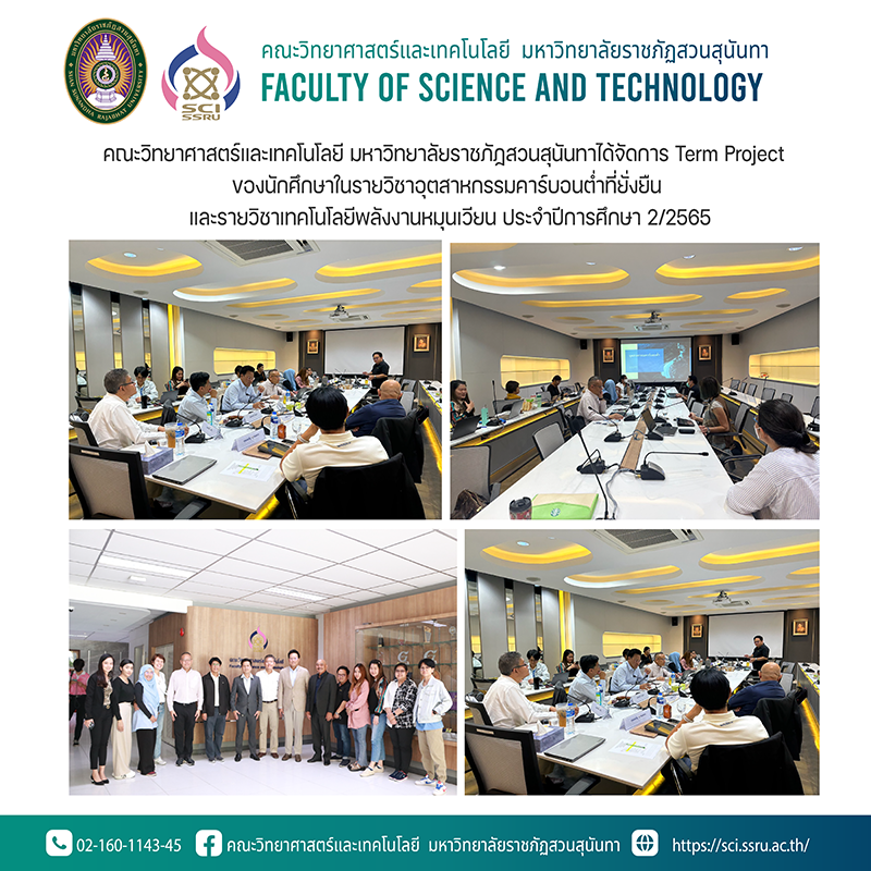 คณะวิทยาศาสตร์และเทคโนโลยี มหาวิทยาลัยราชภัฏสวนสุนันทาได้จัดการ Term Project ของนักศึกษาในรายวิชาอุตสาหกรรมคาร์บอนต่ำที่ยั่งยืน และรายวิชาเทคโนโลยีพลังงานหมุนเวียน ประจำปีการศึกษา 2/2565
