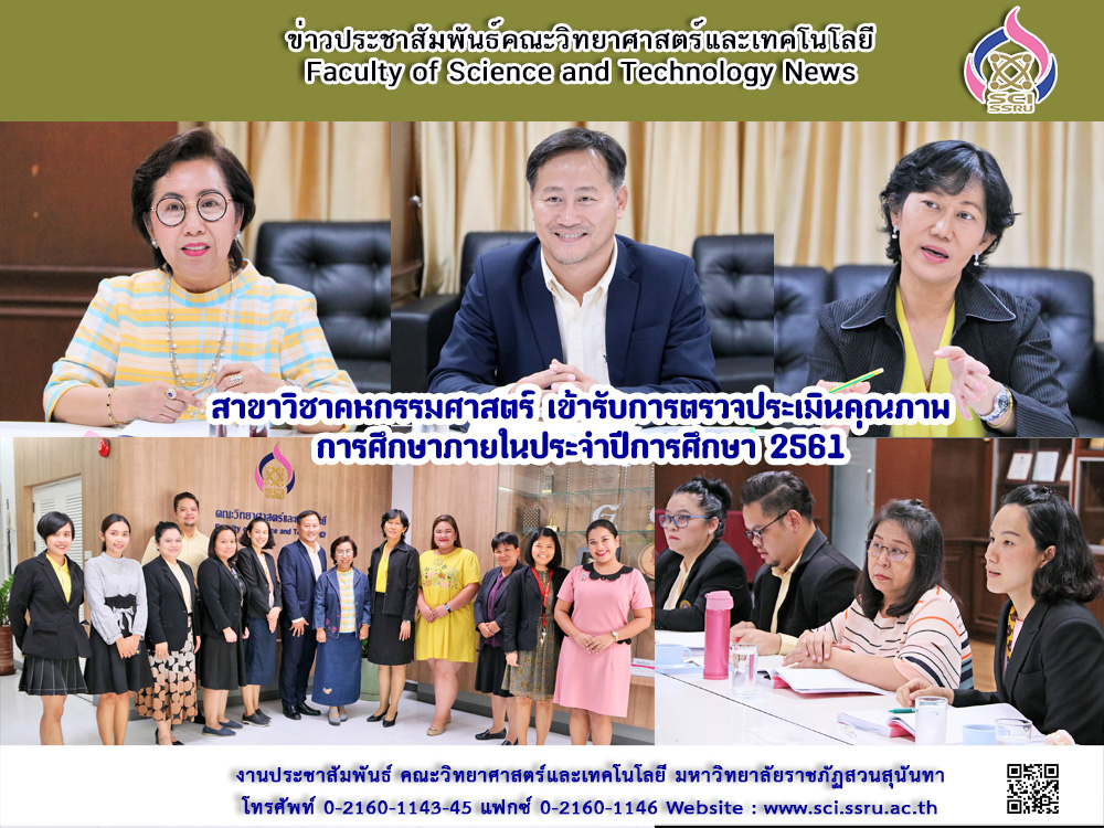 วันที่ 28 มิถุนายน 2562 หลักสูตรวิทยาศาสตรบัณฑิต สาขาวิชาคหกรรมศาสตร์ เข้ารับการตรวจประเมินคุณภาพการศึกษาภายใน ประจำปีการศึกษา 2561 โดยได้รับเกียรติจากผู้ทรงคุณวุฒิจากภายนอก จำนวน 3 ท่าน ได้แก่ รศ.บุษรา สร้อยระย้า (ประธานกรรมการ) ผศ.ศรัทธา แข่งเพ็ญแข (กรรมการ) ผศ.ดร.ฤดี นิยมรัตน์ (กรรมการ) และ นางสาวพิลาวรรณ กองทองนอก (เลขานุการ) ทั้งนี้ เพื่อเป็นการประเมินผลการดำเนินงานของหลักสูตรตามรอบปีการศึกษา 2561 และนำผลการประเมินที่ได้มาพัฒนาหลักสูตรสาขาวิชาต่อไป