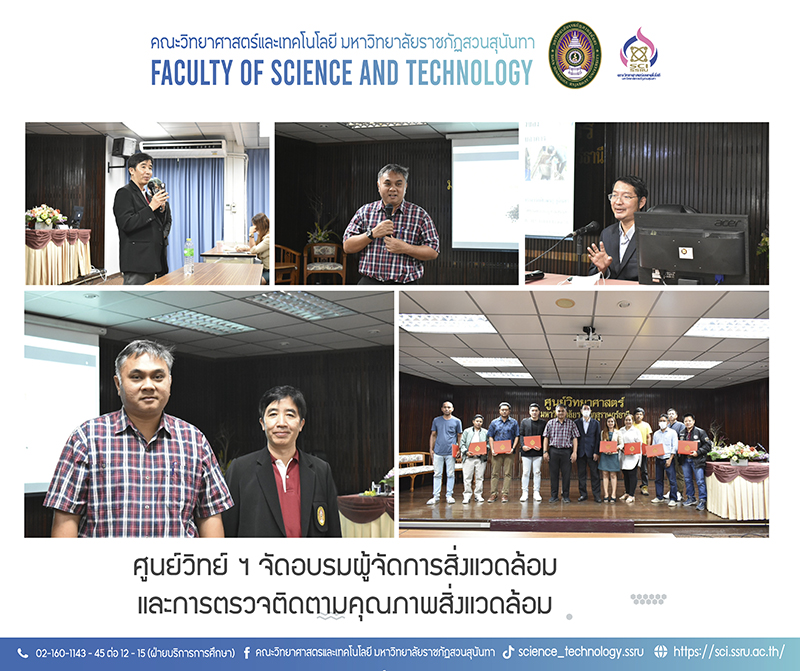 เมื่อวันเสาร์ที่ 28 มกราคม และวันอาทิตย์ที่ 29 มกราคม 2566 ที่ผ่านมา ศูนย์วิทยาศาสตร์ คณะวิทยาศาสตร์และเทคโนโลยี มหาวิทยาลัยราชภัฏสวนสุนันทา ได้เดินทางไปจัดอบรมเพื่อบริการวิชาการ ณ ศูนย์วิทยาศาสตร์ คณะวิทยาศาสตร์และเทคโนโลยี มหาวิทยาลัยราชภัฏสุราษฐ์ธานี ใน 2 หลักสูตร ได้แก่ “หลักสูตรผู้จัดการสิ่งแวดล้อม”และหลักสูตร “การติดตามตรวจสอบคุณภาพสิ่งแวดล้อมตามมาตรการที่กำหนดไว้รายงานการประเมินผลกระทบสิ่งแวดล้อม (EIA) และเทคนิคการดูแลระบบบำบัดน้ำเสียสำหรับโครงการจัดสรรที่ดินและบริการชุมชน (โครงการที่พักอาศัย)” โดยมี รองศาสตราจารย์ ดร.ชัยศรี ธาราสวัสดิ์พิพัฒน์ และรองศาสตราจารย์ศิวพันธุ์ ชูอินทร์ อาจารย์ประจำสาขาวิชาวิทยาศาสตร์และเทคโนโลยีสิ่งแวดล้อม เป็นวิทยากรบรรยาย และได้รับเกียรติจาก รองศาสตราจารย์ ดร.ฐิติพงศ์ เครือหงส์ คณบดีคณะวิทยาศาสตร์และเทคโนโลยี มหาวิทยาลัยราชภัฏสุราษฎร์ธานี เป็นประธานเปิดและปิดการอบรม