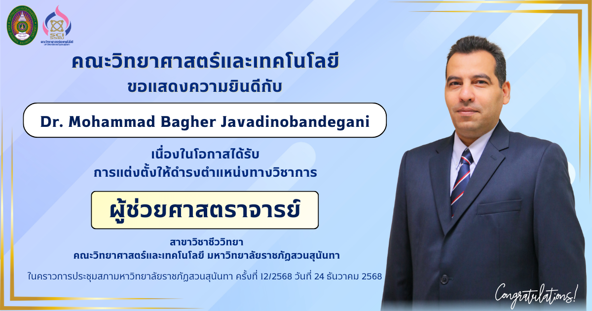 คณะวิทยาศาสตร์และเทคโนโลยี ขอแสดงความยินดีกับ Dr. Mohammad Bagher Javadinobandegani