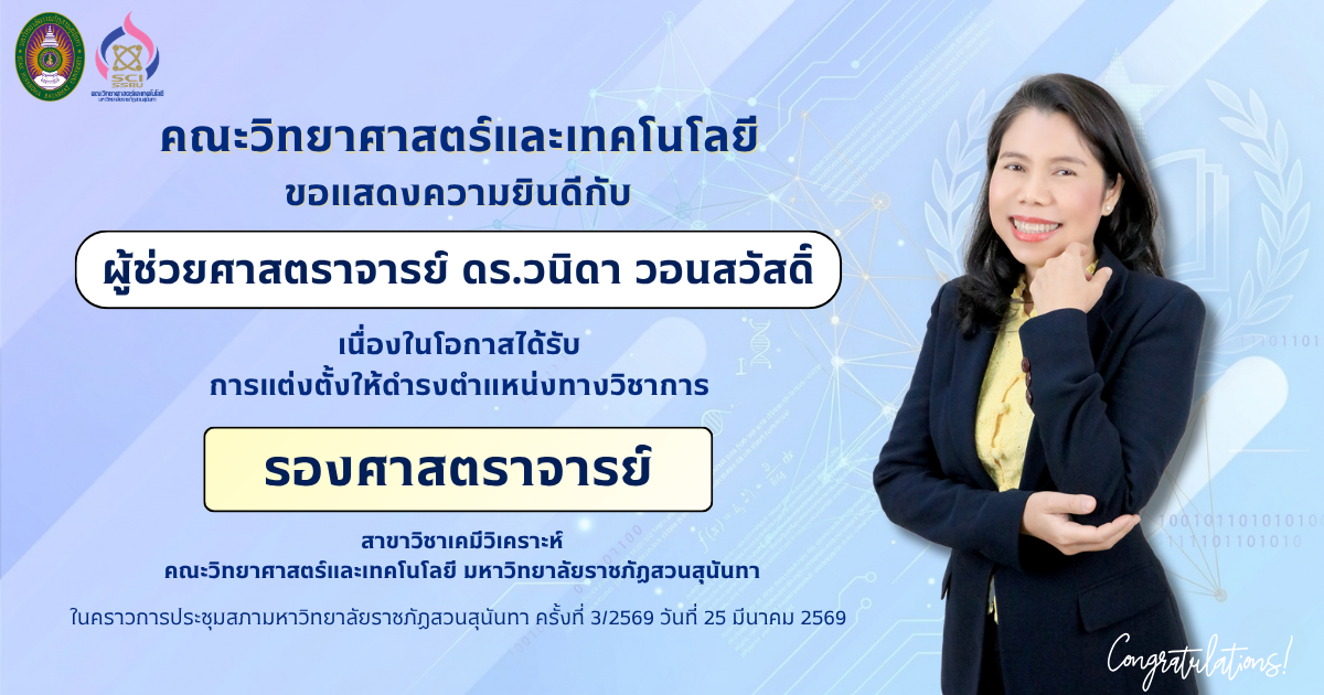 > คณะวิทยาศาสตร์และเทคโนโลยี ขอแสดงความยินดีกับ รศ.ดร.วนิดา วอนสวัสดิ์